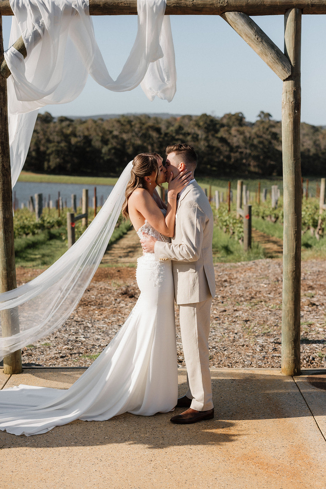 A romantic nook overlooking the dam and framed by gently rolling vines, our Vineyard Ceremony space captures the charm of a true South West winery wedding. Calm, intimate, and naturally elegant, it's the perfect backdrop for couples wanting a heartfelt, close-knit moment surrounded by nature.