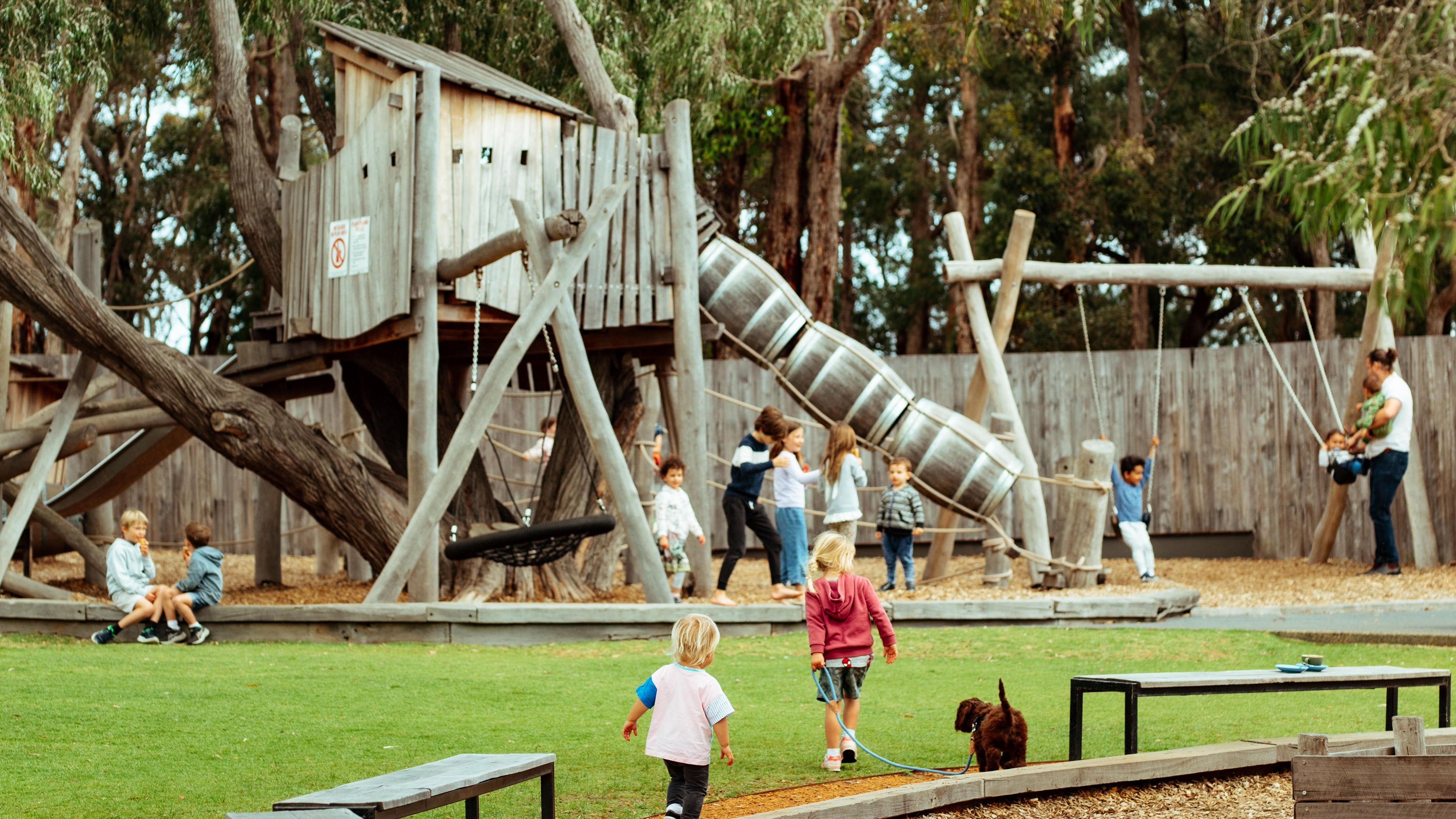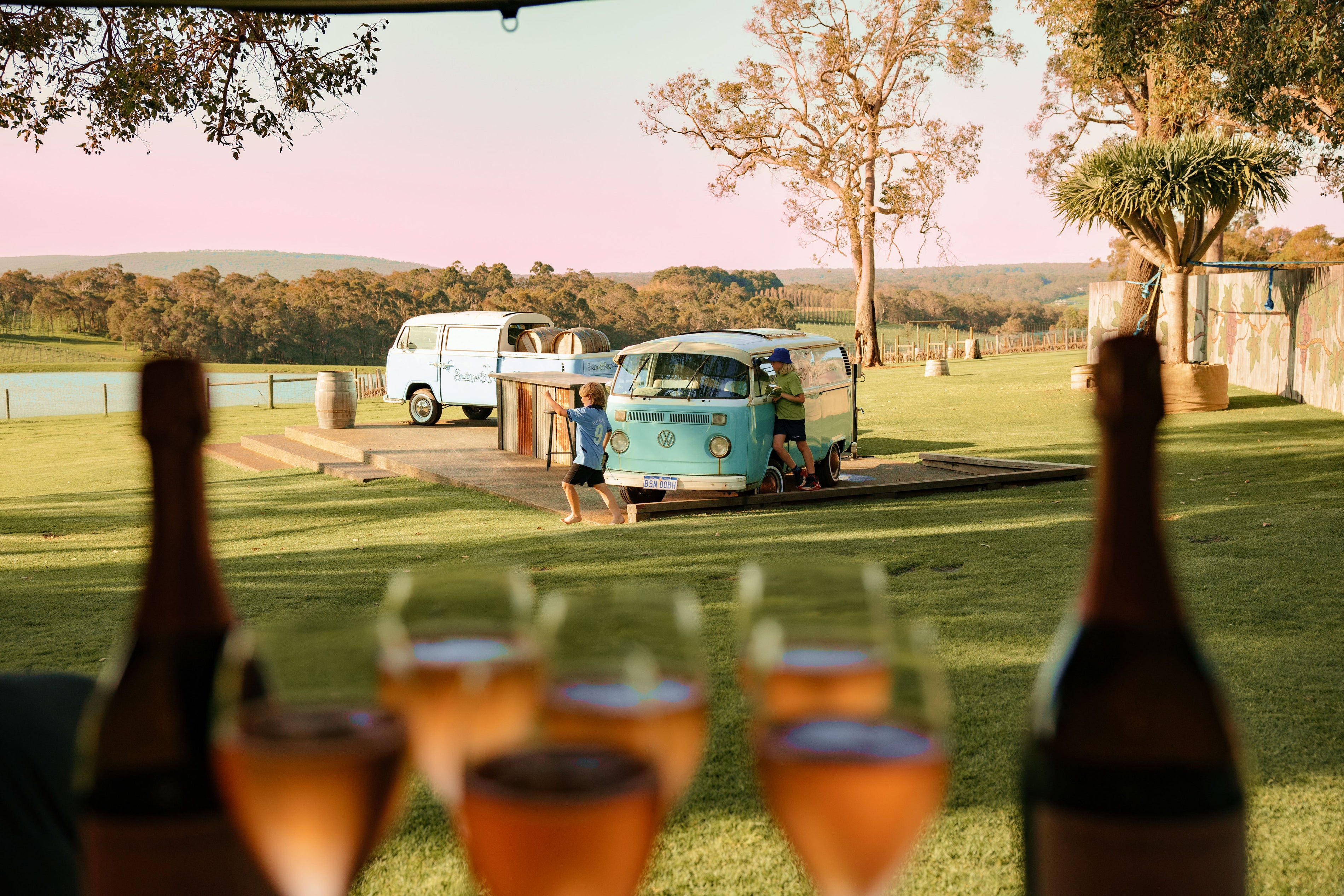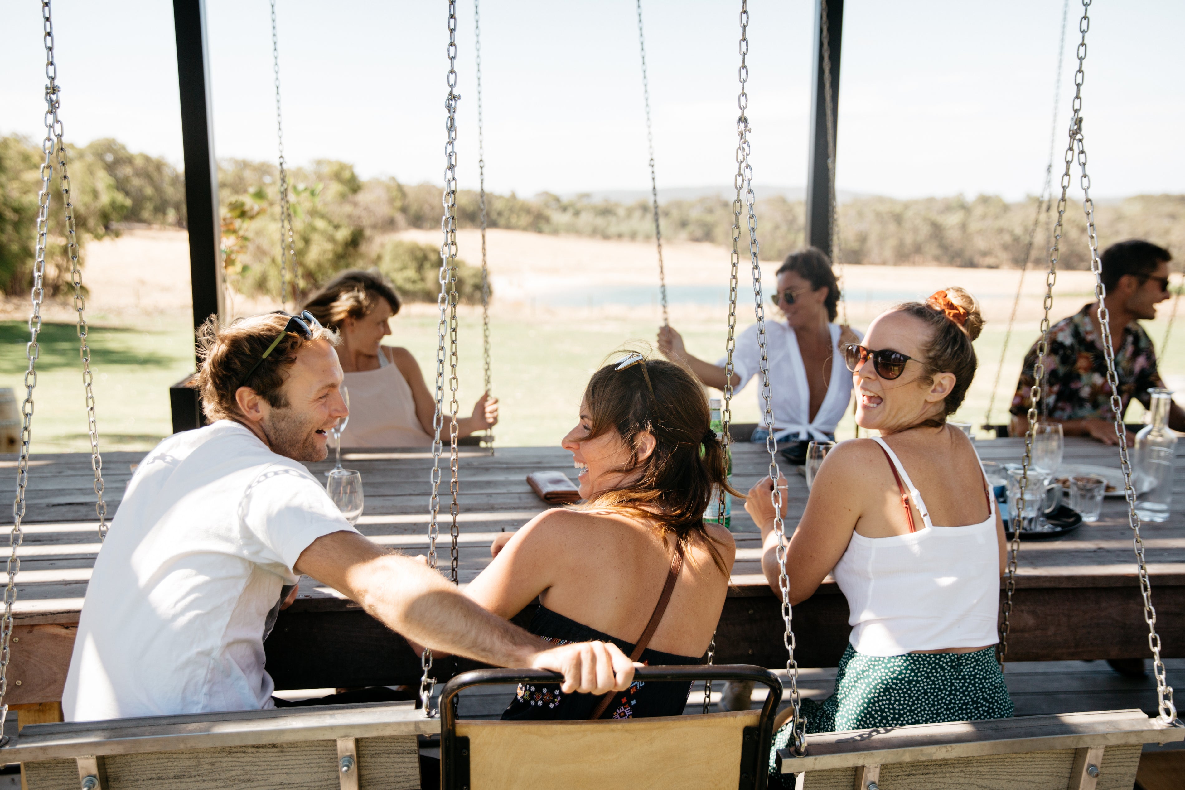 Tucked into the rolling hills of Yallingup, Swings is a place made for long lunches and easy afternoons. Our open lawn, giant swings, adventure playground and family-friendly spaces make it the kind of place where kids can run free while you and your dog sit back with a glass (or bottle) in hand.